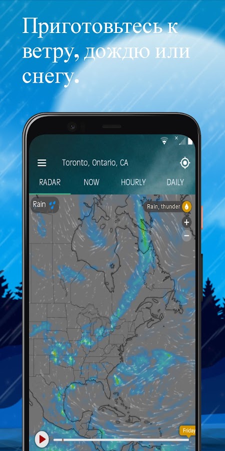 Скачайте приложение Радар Погоды — Карта Штормов для Android бесплатно - последняя версия (11.1.9) уже доступна для установки на ваш телефон или планшет.
