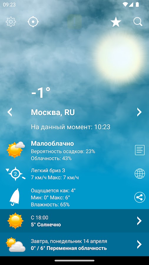 — Моментально просматривайте предстоящие изменения в прогнозе погоды