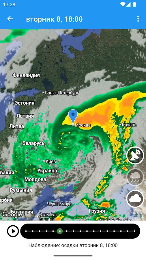 — Карта погоды: анимация спутниковой карты и радар осадков