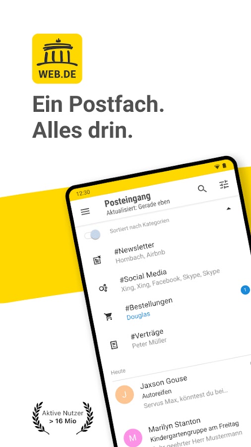 → Установите приложение WEB.DE Mail прямо сейчас и зарегистрируйте свой желаемый адрес @web.de!