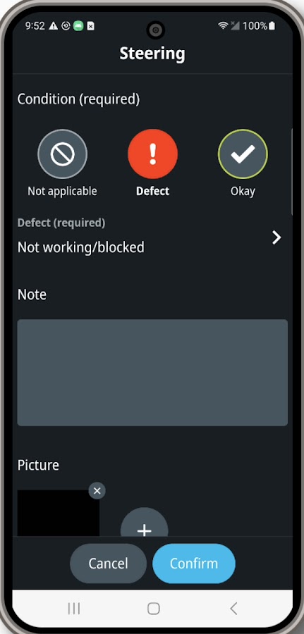 Мобильное приложение Webfleet Vehicle Check позволяет водителю сообщать о любых неисправностях автомобиля в цифровом формате, включая проблемы с шинами, сокращая время, затрачиваемое на техосмотр, и избавляя от необходимости тратить много времени на оформление документов. Менеджер автопарка получает уведомления в режиме реального времени, а задачи по техническому обслуживанию можно запускать одним кликом.