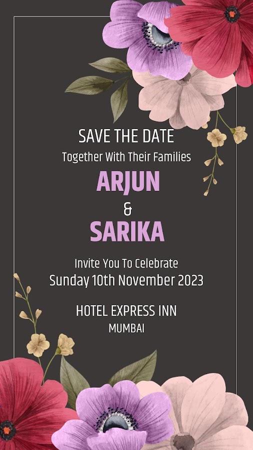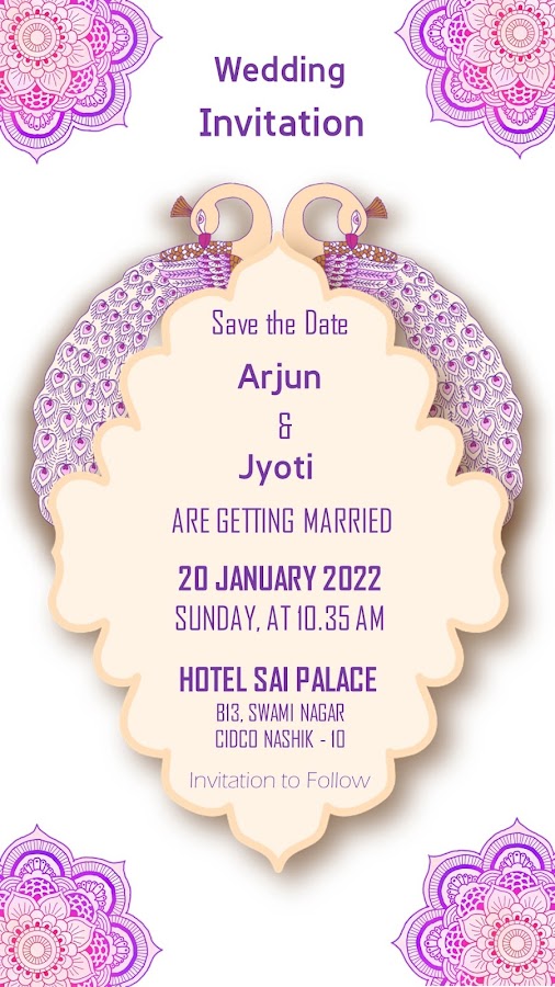 Приложение Wedding Invitation Video Maker — лучшее в мире приложение для приглашения на свадебную церемонию для создания уникального и красивого видео-приглашения на свадьбу. С помощью этого приложения Invitation Video Maker вы можете сделать отличное видео-приглашение на свадьбу и пригласить своих родственников на свадьбу.