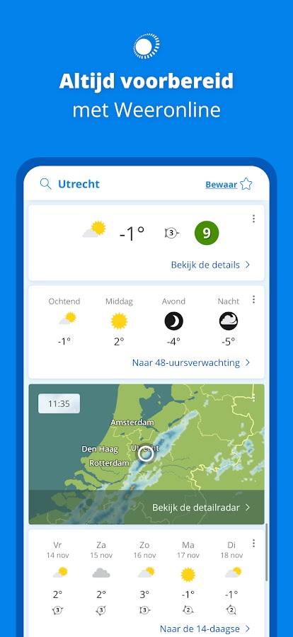 Просыпаетесь утром и хотите сразу узнать, какая сегодня будет погода? С помощью приложения погоды Weeronline вы можете мгновенно увидеть погоду в Нидерландах, текущий прогноз погоды и