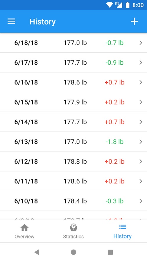 • Посмотрите статистику о вашем весе, то есть средний вес, индекс массы тела (ИМТ), разницу в стартовом весе и даже больше.