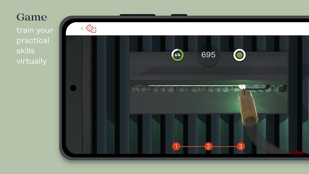 Игра в сварку позволяет получить первый практический опыт виртуальной сварки. Пользователь выполняет сварку на нескольких уровнях, успешно выполняя различные задачи (например, сварка на пластине, угловой и стыковой шов). Виртуальный тренер, называемый «Призрак», помогает сварщику со скоростью сварки и положением, давая цветные знаки. Цель состоит в том, чтобы набрать как можно больше баллов. Этот балл будет предоставлен в личном и онлайн-рейтинге.