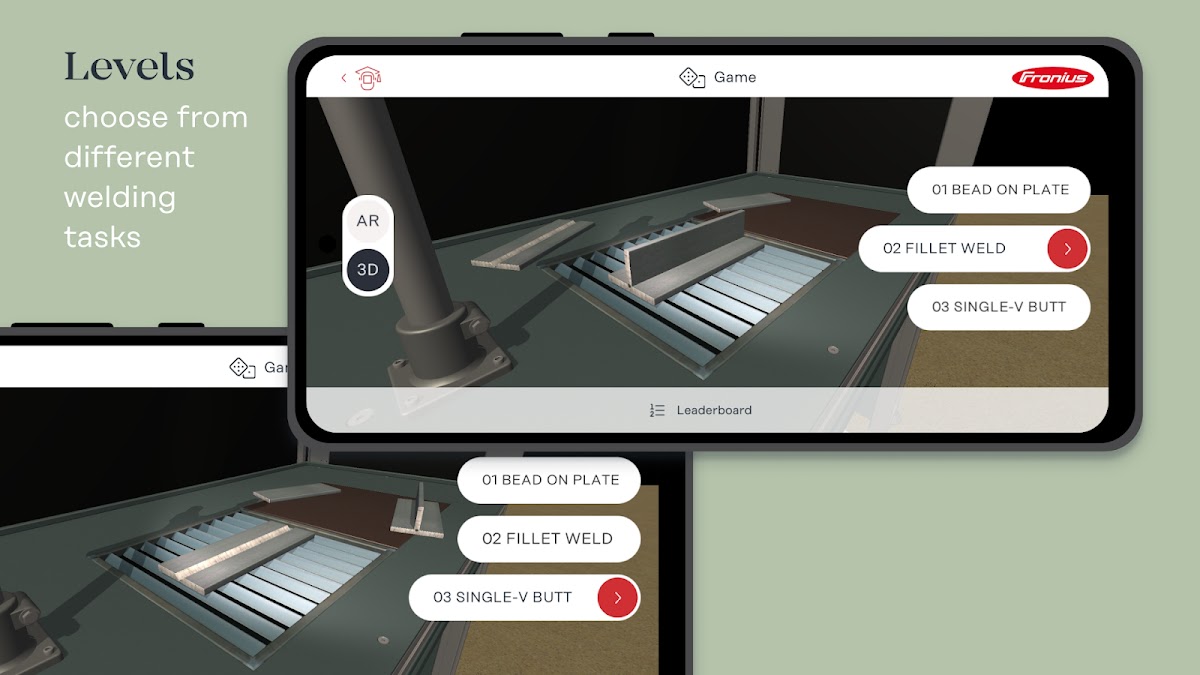 Используя викторину, каждый пользователь приложения в игровой форме накапливает базовые знания о сварке. После успешного ответа на 10 вопросов с несколькими вариантами ответов по сварке на разных уровнях будет подсчитан окончательный балл. Персональный рейтинговый список записывает эти результаты. Кроме того, можно сравнить свой высокий балл на международном уровне.