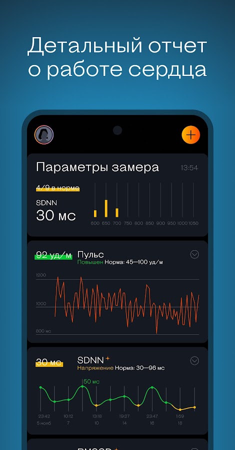 – Вариабельность сердечного ритма — показатель здоровья, подтвержденный 25 000+ научных исследований. Это лучше, чем пульсометр, а исследования доказывают, что наш метод по точности не уступает ЭКГ сердца