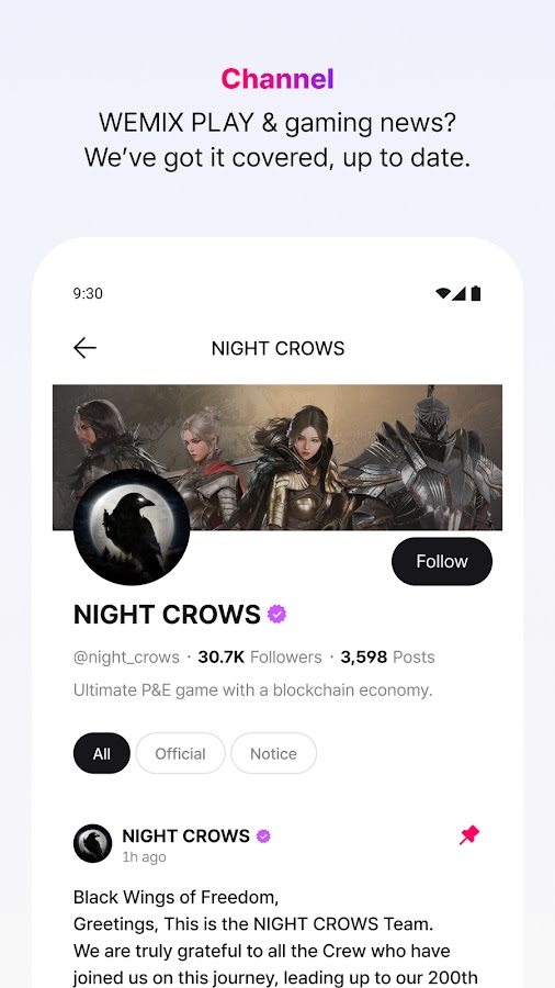 Получайте последние обновления WEMIX PLAY и ваших любимых игр — быстро и напрямую.