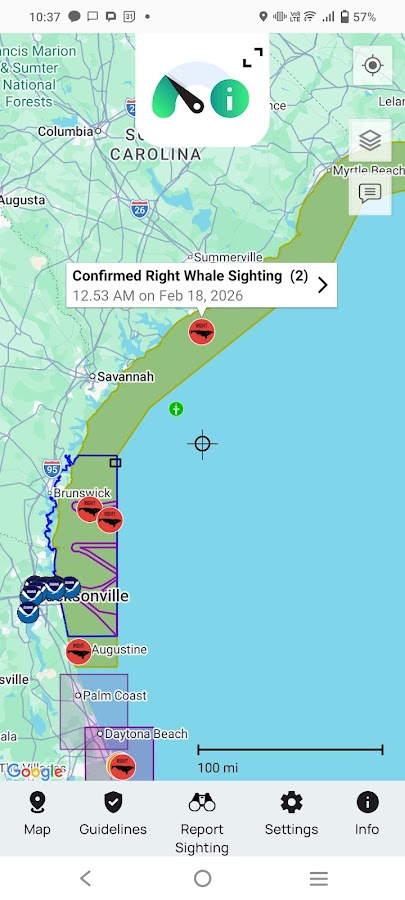 — Сообщайте о наблюдениях: регистрируйте наблюдения живых, мертвых или раненых китов и сообщайте об опасностях на море или столкновениях с судами.