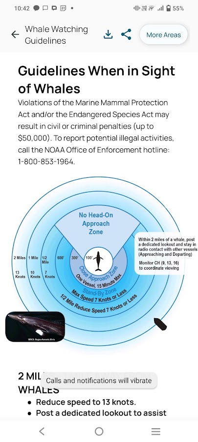 — Оповещения в реальном времени: получайте уведомления, когда находитесь вблизи недавней активности китов или в районах, вызывающих беспокойство.
