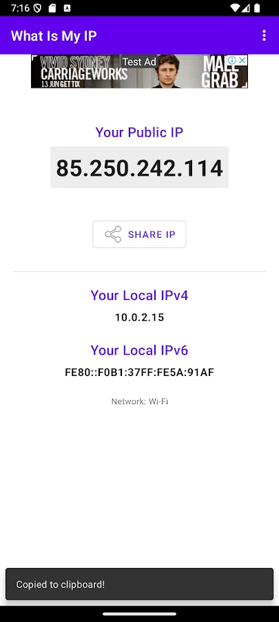 Независимо от того, находитесь ли вы дома, на работе или в пути, «What Is My IP» мгновенно отображает ваш публичный IP и локальные IP-адреса (как IPv4, так и IPv6) всего одним нажатием.