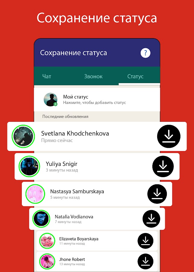 Офлайн доступ: Просматривайте сохраненные статусы даже без подключения к интернету.