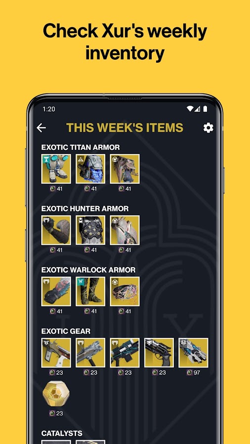 Доступ к архиву: просмотрите инвентарь Xur с момента выхода Forsaken и отслеживайте частоту появления экзотических предложений.
