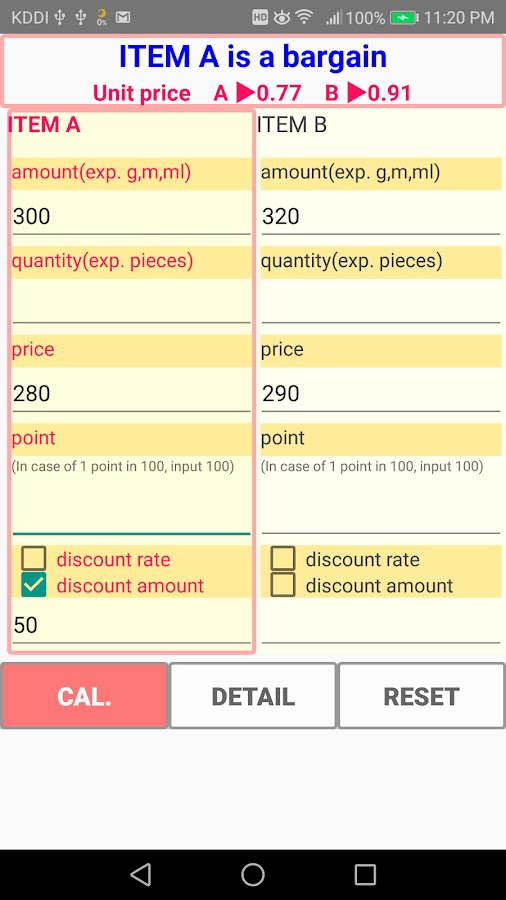 3. При нажатии на кнопку «Рассчитать», сумма за единицу будет отображаться, и вы будете знать сразу, какой из них лучше.