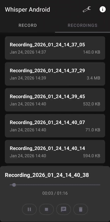 🚀 Почему Whisper Android? Независимо от того, являетесь ли вы студентом, профессионалом, журналистом или просто нуждаетесь в быстрой транскрипции на ходу, Whisper Android предлагает: