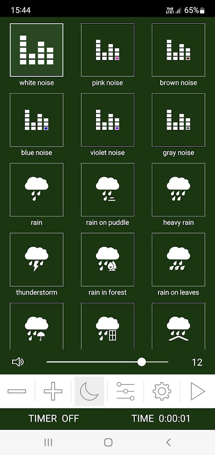 ✔ Все цветные шумы (белый шум, розовый шум, коричневый шум, зеленый шум, синий шум, фиолетовый шум, серый шум)