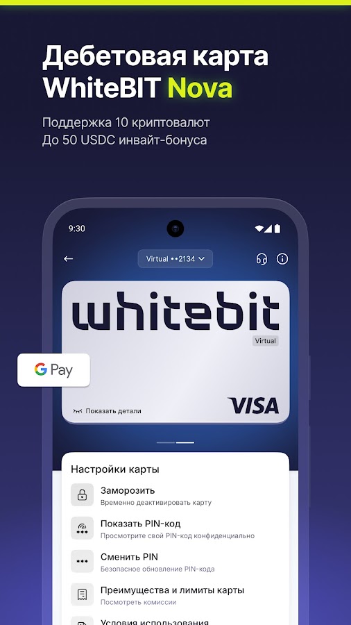 — WhiteBIT Nova. Дебетовая карта, позволяющая тратить криптовалюту на ежедневные покупки с реальным кэшбеком в BTC или WBT до 10%, 0% комиссии за открытие и закрытие карты, интеграцией в кошелек Apple Pay и Google Pay, снятием средств в банкоматах, инвайт-бонусом. Карта WhiteBIT Nova доступна как в цифровом, так и в физическом формате.