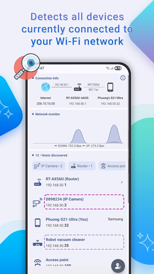Устали от медленного интернета и назойливых подозрений, что кто-то использует ваш Wi-Fi? Верните себе контроль с помощью Who Uses My WiFi — Net Scanner!