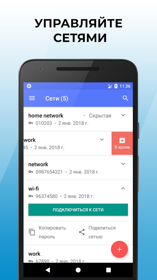 ◈ при каждой новой подключенной сети приложение обновит список сохраненных паролей на устройстве.