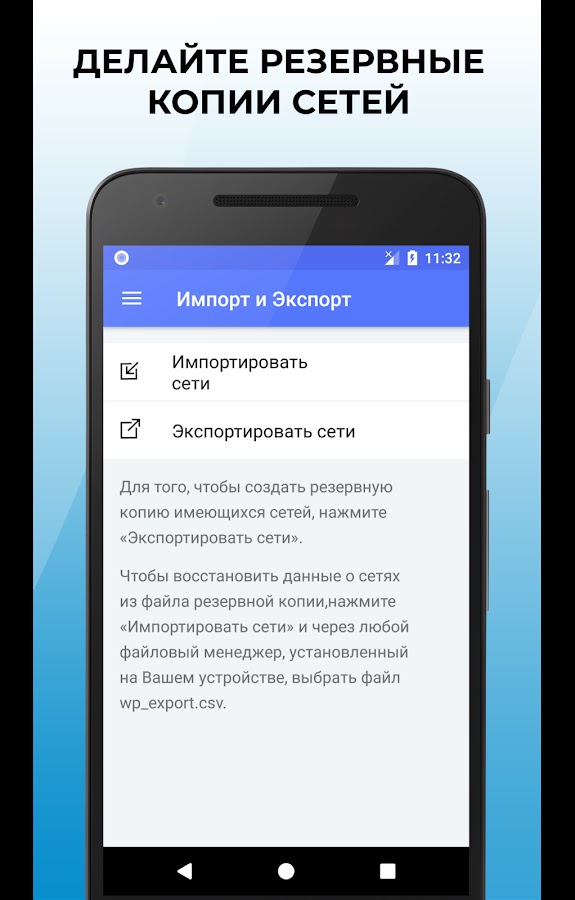 Ранняя версия называлась “Напоминатель паролей от Wi-Fi”, совместимость с файлом импорта истории wifi_pass_export.csv сохраняется, поэтому можно перенести информацию с ранних версий приложения.
