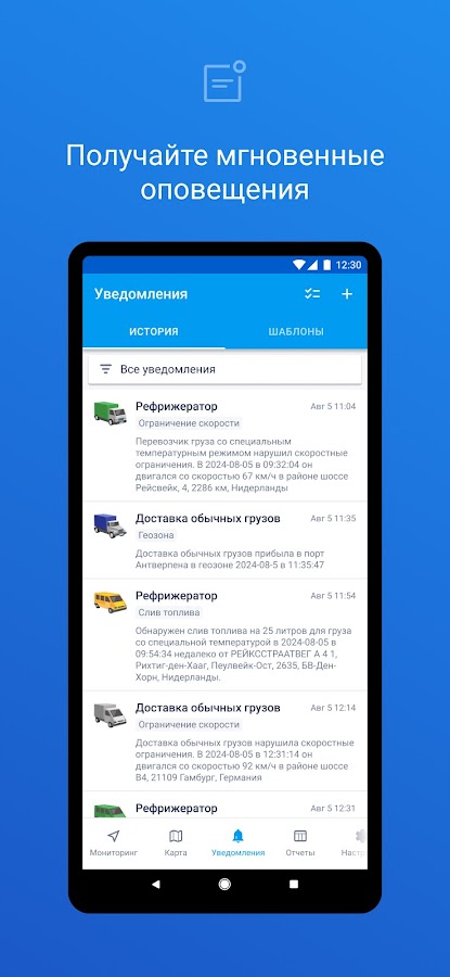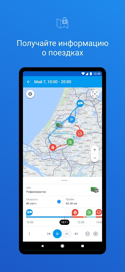 — Информативные отчеты. Используйте подробные данные о поездках, остановках, сливах и заправках топлива для быстрого принятия решений.
