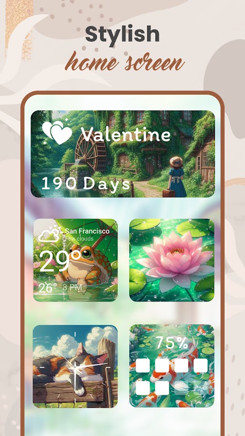 Скачайте приложение Widget 2026: Aesthetic Widgets для Android бесплатно - последняя версия (85.1.4) уже доступна для установки на ваш телефон или планшет.