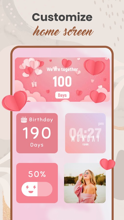 Загрузите Widget: Aesthetic Widgets прямо сейчас и начните настраивать свой экран с помощью лучшего приложения для настраиваемых виджетов. С легкостью создавайте, редактируйте и персонализируйте домашний экран Android. Получите лучший внешний вид на Android с помощью нашего удобного приложения. Сделайте свой домашний экран уникальным с помощью виджета!
