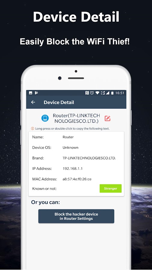 WiFi детектор вора самый простой сканер сети, IP сканер и WiFi сканер, который позволяет обнаружить, кто находится на моем WiFi, и вы можете заблокировать вора в настройках маршрутизатора от моего WiFi. Использование WiFi детектор(кто использует мой WiFi?), в считанные секунды вы знаете, сколько и какие устройства подключены к беспроводной маршрутизатор с IP, Mac ID и поставщика листинг.