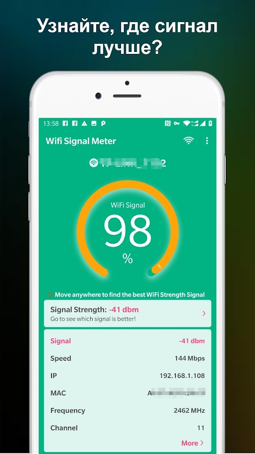 Сканер WiFi полезен для нахождения хороших областей подключения WiFi в вашей сети WiFi. Измеритель силы сигнала WiFi может быстро проверить ваш WiFi, чтобы найти лучшее местоположение.