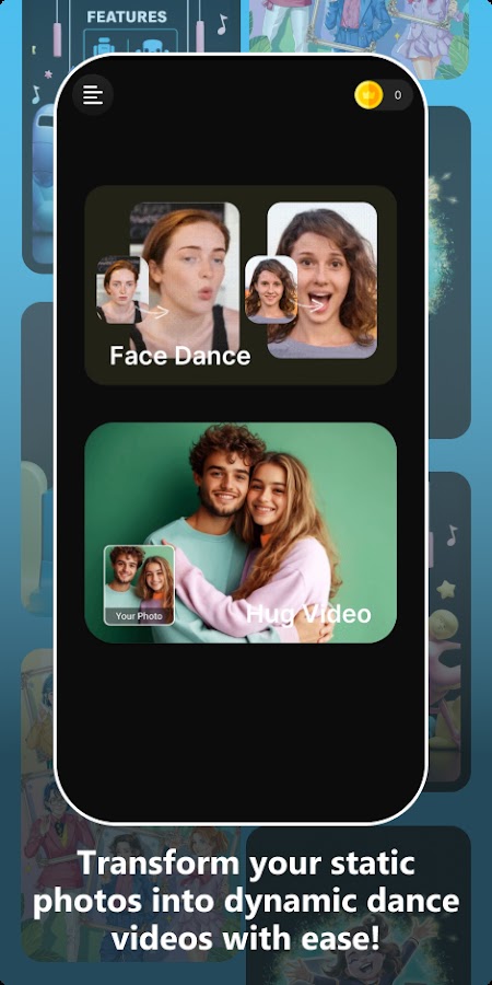 С Wiggle: AI Face Dance & Hug Video Creator каждая фотография становится сценой, каждое лицо рассказывает историю, а каждое воспоминание оживает! Создавайте вирусные мемы, эмоциональные поздравления, забавные видеоролики и популярные клипы с танцами на лицах — и все это с помощью ИИ.