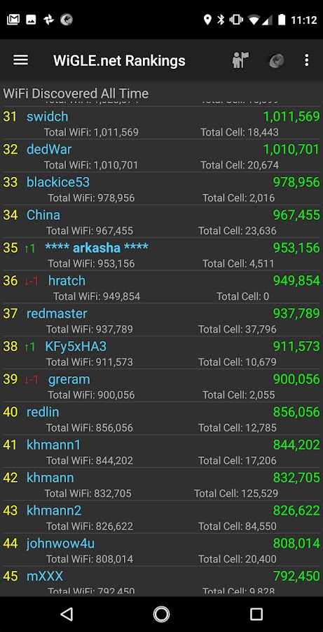 * Загрузка и конкурировать на мировом WiGLE.net лидеров