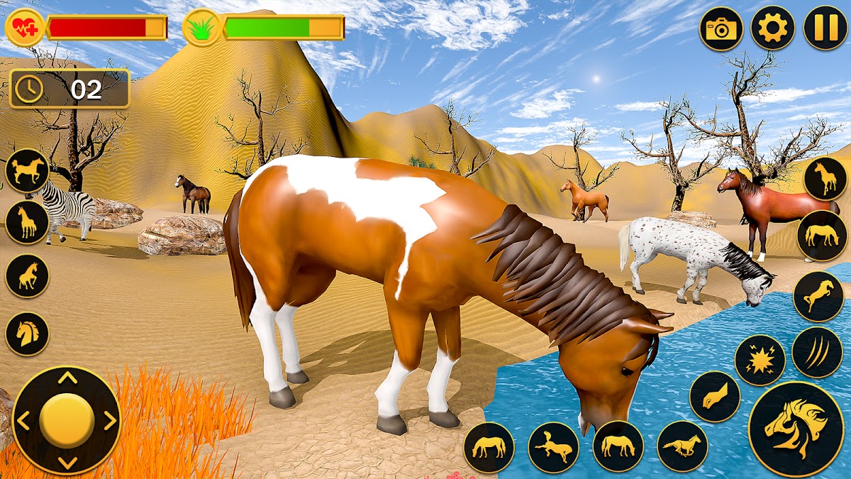 Добро пожаловать в Симулятор Дикой Лошади Семейный 3D и приготовьтесь развлечь себя симулятором лошади, выполняя захватывающие квесты в джунглях саванны. Играйте за дикую лошадь или виртуальную лошадь и атакуйте опасного льва, чтобы выжить вместе со своей семьей в лесах, играя в эту семейную игру с животными. Начните приключение на выживание лошади, чтобы вырастить свою семью в одиночестве глухого леса. Накормите детенышей лошадей и спроецируйте свою половинку из лесных диких животных. Исследуйте джунгли, чтобы найти грибы, продукты питания и воду, чтобы накормить детеныша арабской лошади. Создайте клан арабских лошадей и используйте суперспособности атаки, такие как энергетические шары, чтобы победить диких тигров, злых волков, львов и медведей, чтобы собирать монеты и улучшать свою лошадь. В отличие от других игр о конных боях, Симулятор Семьи Дикой Лошади — это симулятор лошади, рассказывающий о жизни лошадей и их семей.
