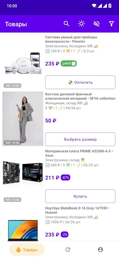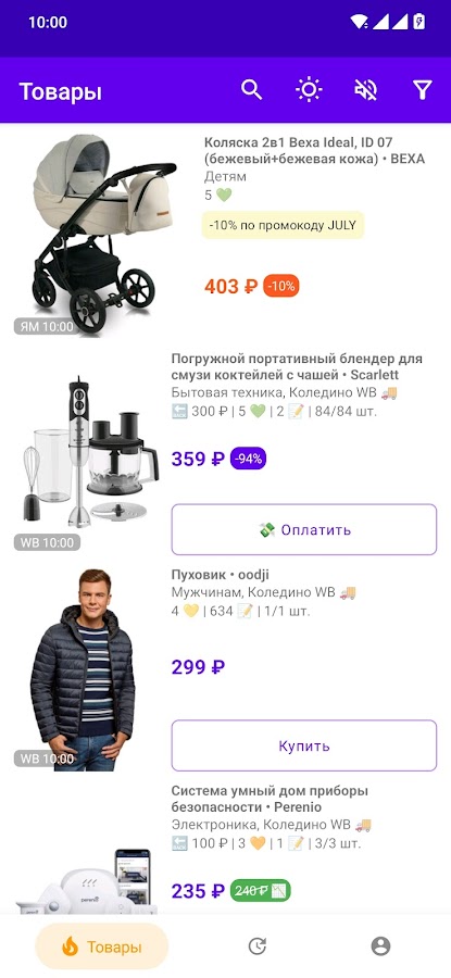 Для большинства функций потребуется подписка, но начать можно и без нее: в приложении доступны все найденные товары с задержкой в две минуты — самое интересное вам, конечно, уже не достанется, зато вы сможете оценить пользу от покупки подписки 🤑