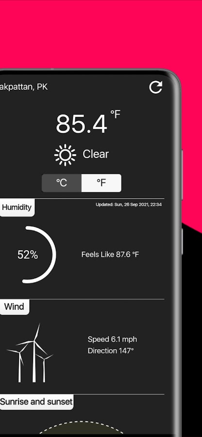 4. Выберите сегодняшнее время восхода и заката с красивой анимацией.