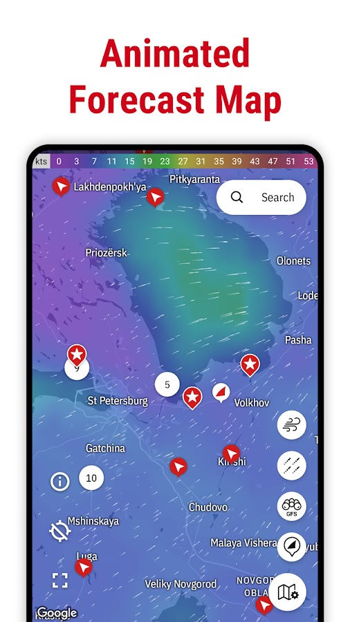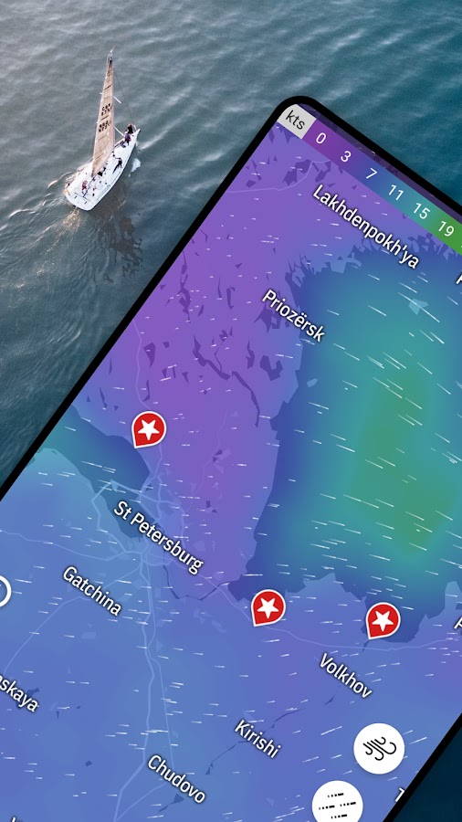 • Владельцев судов и капитанов — отслеживайте силу и направление ветра и приливы