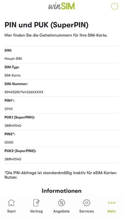 Информация о winSIM Servicewelt