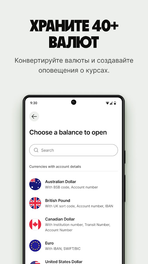 • Получите собственный номер счета в Великобритании и британский банковский код, счет IBAN для евро, реквизиты австралийского счета и другие реквизиты — как если бы у вас были местные банковские счета по всему миру