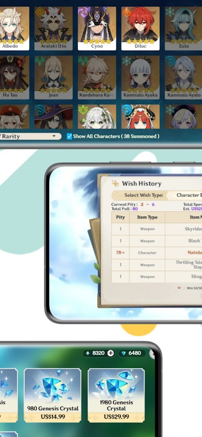 — Доступны все баннеры, начиная с версии 1.0 — последней, даже стандартные и начальные желания были скорректированы для загрузки разных предметов в разных версиях