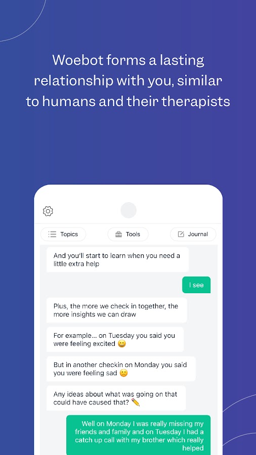 Скачайте приложение Woebot: The Mental Health Ally для Android бесплатно - последняя версия (6.6.0) уже доступна для установки на ваш телефон или планшет.