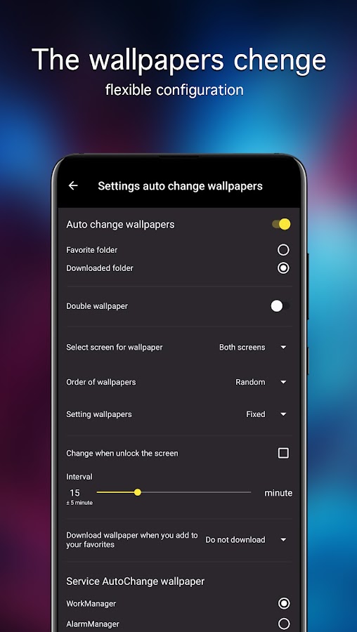 • Настройка качества обоев и превью, для экономии трафика