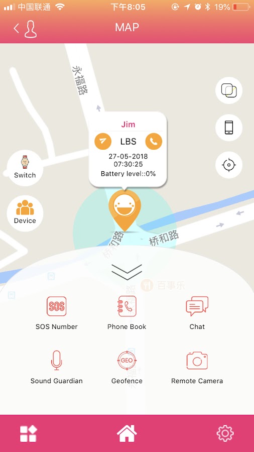 позиционирование карты: поддержка GPS, LBS, WIFI множественное позиционирование, нажмите кнопку позиционирования, чтобы узнать местоположение в любое время ребенка в любом месте.
