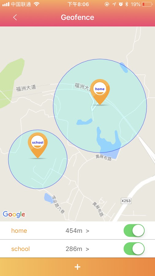 Геозоны: Установить безопасный район, и мы будем предупреждены, что если дети из Safey области.