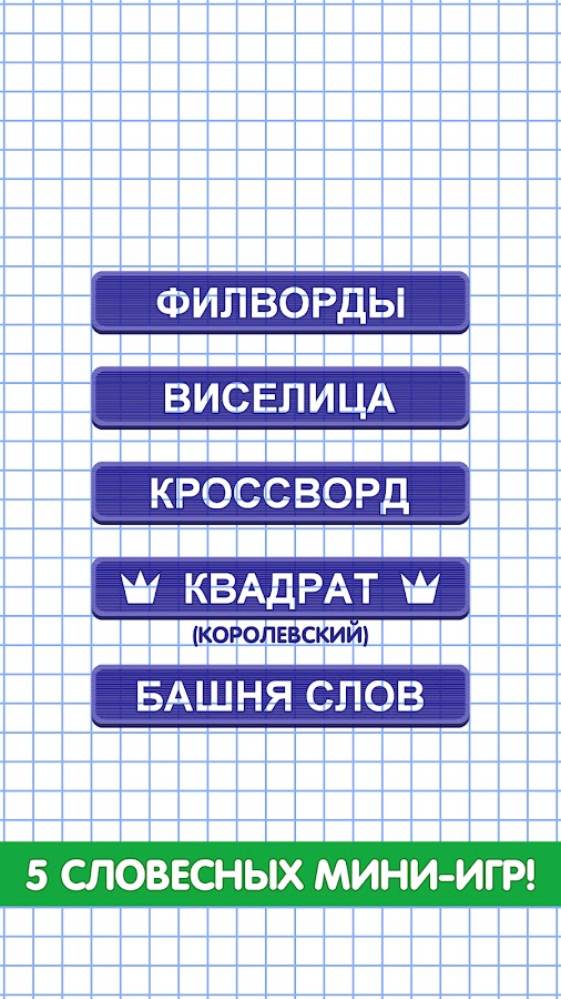 Вы спросите почему эта игра лучшая? Все просто. В данной игре помимо 384 уровней есть бесконечный режим с возможностью выбора своего слова, мультиплеер в котором можно сразиться с друзьями или случайным соперником, словарь который можно редактировать самостоятельно, а также миниигры — сборник популярных словесных игр.