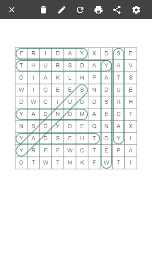 Приложение поддерживает опции для ограничения направлений слов любой комбинацией поперек, вниз, по диагонали, вперед или назад, чтобы увеличить или уменьшить сложность по мере необходимости.