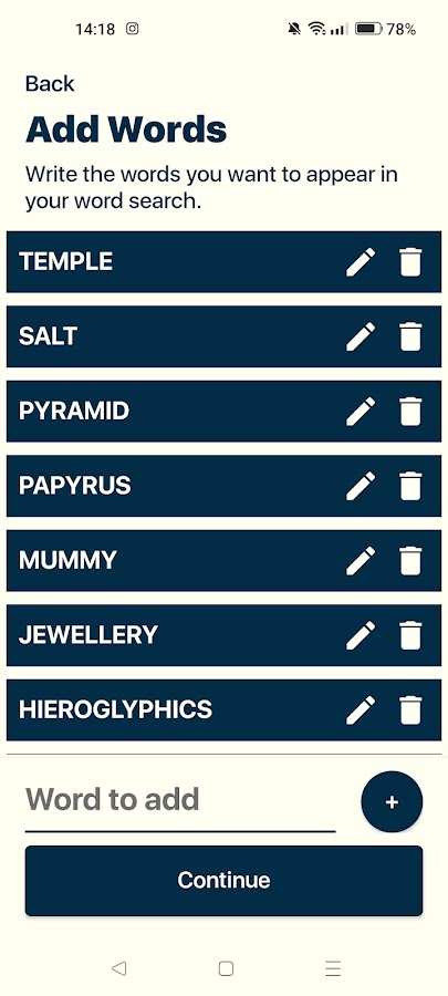 Личный подход: Введите свой уникальный список слов. Легко редактируйте или удаляйте слова, чтобы сделать вашу головоломку идеальной.