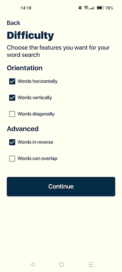 Разнообразные настройки: От горизонтального, вертикального и диагонального расположения до интересных опций обратного и перекрестного расположения слов — настройте свой уровень сложности.