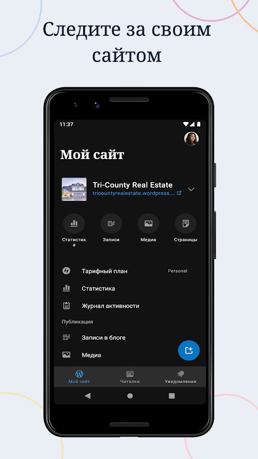 С WordPress для Android вы получаете все возможности веб-публикации в своём смартфоне. Это инструменты для создания веб-сайта и многое другое.