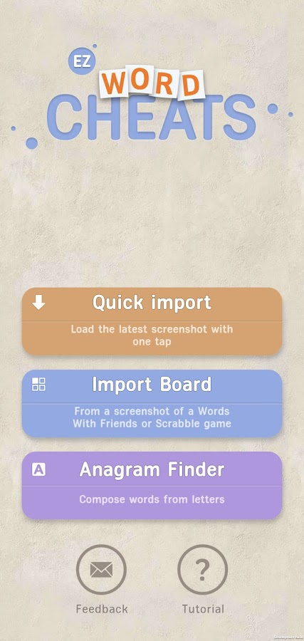 Умное чит-приложение без рекламы для Words With Friends и Scrabble. Мы автоматически вводим данные на доску и находим для вас лучшие ходы! Теперь вы можете обманывать или разыгрывать своих друзей, делая ходы на 80 очков, или улучшать свои навыки, используя встроенный словарь и поисковик анаграмм.