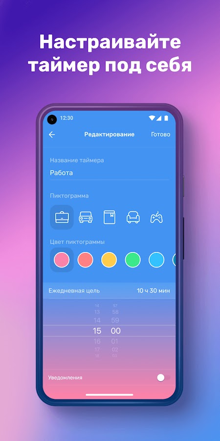 ★ Учет времени не прекращается, если приложение не запущено или Ваш смартфон в спящем режиме.