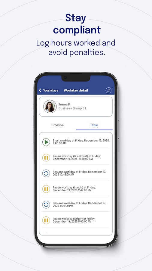 Благодаря простому веб-доступу или самому приложению вы можете увидеть часы работы ваших сотрудников, время начала и окончания времени и остановки, которые они делают в течение дня.